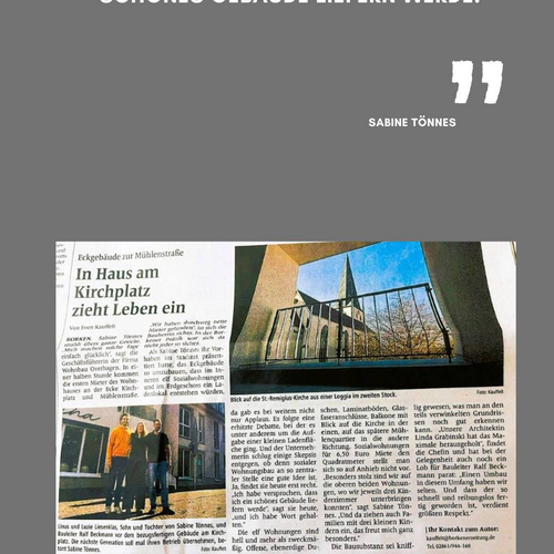 Im „Musikerviertel“ in Recklinghausen realisieren wir ein hochwertiges Mehrfamilienhaus mit 10 Eigentumswohnungen und hauseigener Tiefgarage inklusive modernem Pkw-Aufzug. Die Lage zählt zu den besten Wohnadressen der Stadt. Das Festspielhaus Recklinghausen ist fußläufig erreichbar, ein Supermarkt befindet sich in unmittelbarer Nähe. Die Innenstadt…