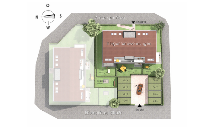 Als Sonderwunsch kann die Garage mit der Stromverkabelung für eine Ladestation für E-Autos(Wall-Box) ausgestattet werden. Pro Wohnung kann nur eine Garage erworben werden.