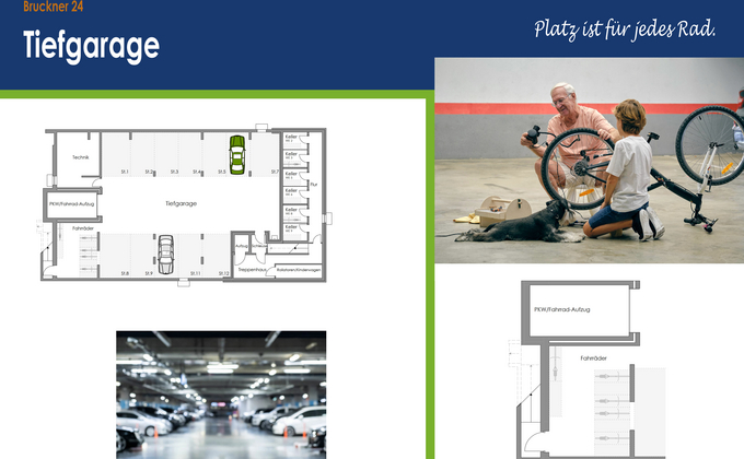 - Tiefgaragenstellplatz (25.000 €), erreichbar über einen Pkw-Aufzug